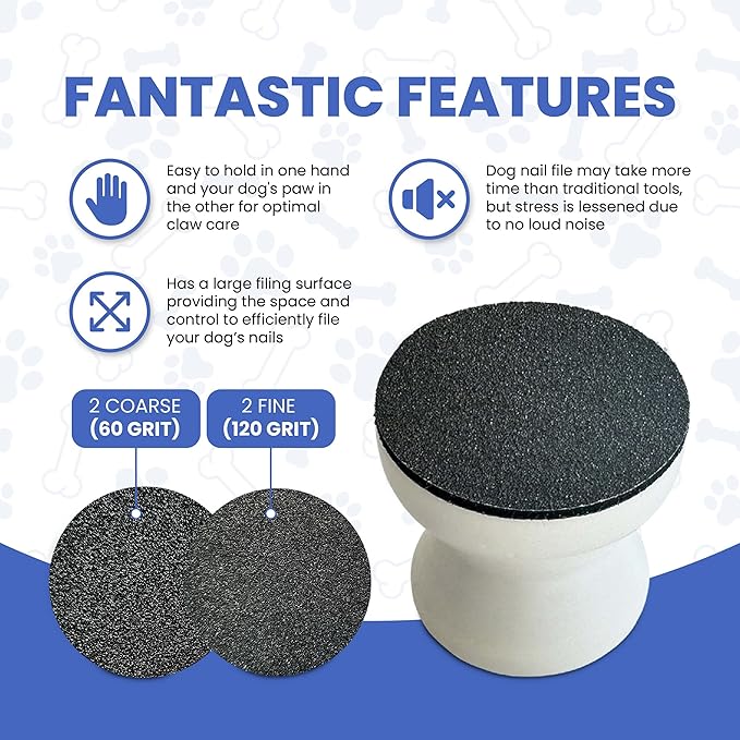 - Coarse and Fine Options: The pet nail grinder for dogs set includes one 1 dog nail file, two 60-grit, and two 120-grit sandpapers, giving you the flexibility to choose the ideal level of coarseness for your furry friend's nails. Whether they need a gentle touch up or a more thorough filing, our paw grinder has you covered for your dog grooming needs.