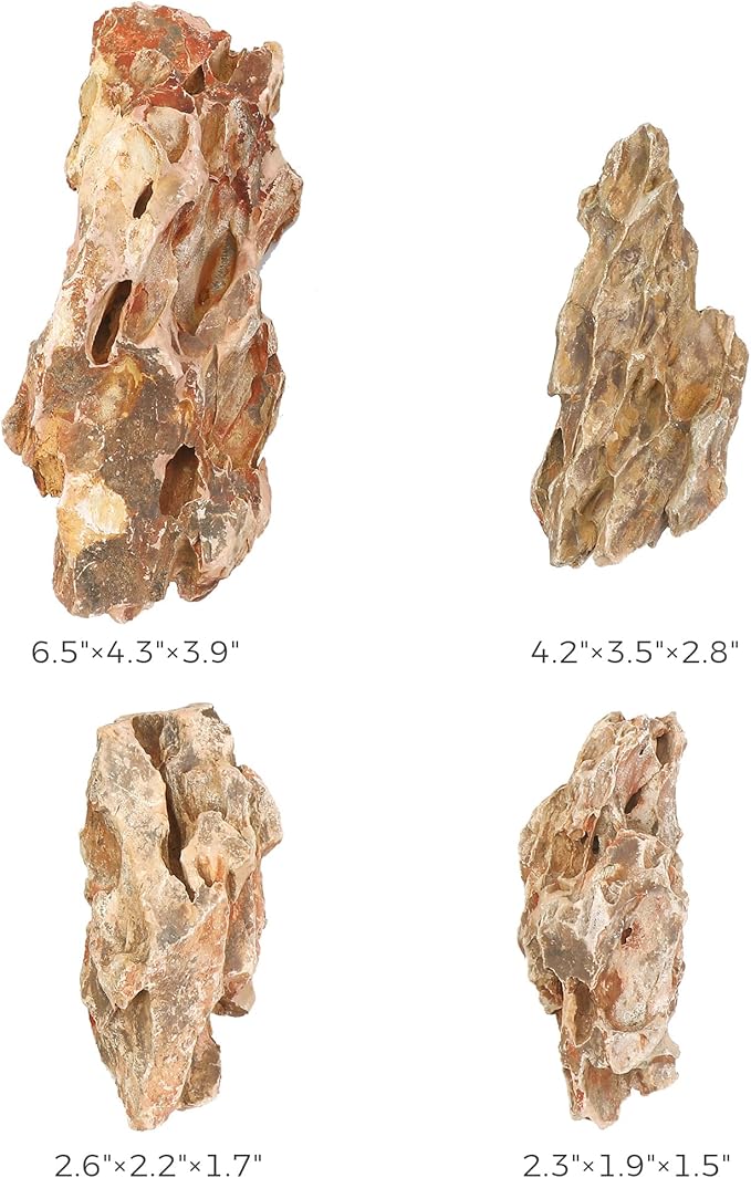 2-6 Inches Natural Dragon Stone 4 PCS Aquarium Rocks for Aquascaping, Aquarium Landscaping, Terrariums, Fish Tank Decoration, Vivariums, Paludarium, Reptile and Amphibian Enclosures