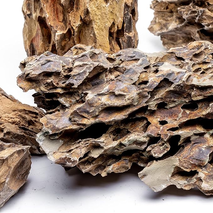 SubstrateSource Natural Stone for Aquarium, Terrarium, Paludarium, Reptile Enclosures - Set of Decorative Rocks for Landcapes, Aquascaping, Fish Tank Decor (Dragon Stone, 16 Pounds, 2-8)