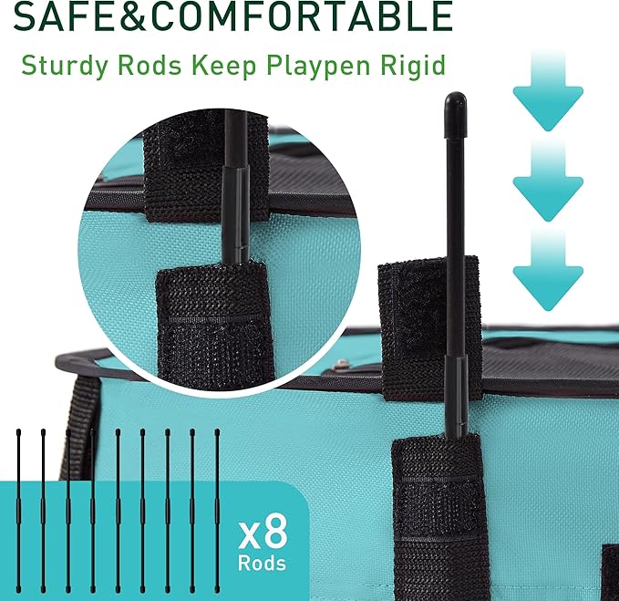 - Easy to Assemble and Store: The Portable Pet Play Pen comes along with a convenient carrying case that can easily store your playpen. Follow the instructions,you can assemble it in just 30 seconds. And it's also easy to fold back flat when not in use. Our lightweight portable pet playpen can be used indoors, outdoors, traveling, camping, etc.