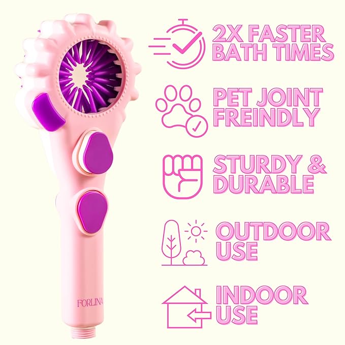 Forlina Brand Dog Shower Attachment | Multi-Functional | One-Handed Operation | Dog Bath Supplies | Shampoo Brush With Low Joint Stress | Easy To Install | Small