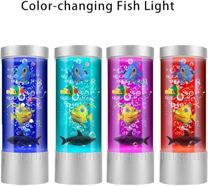 Fish Lamp Aquarium Artificial Fish Tank Bubble Color-Changing Mood Light Decorations for Home Office Decor Great Gifts for Kids