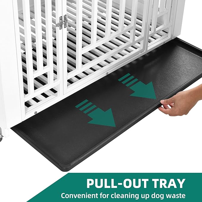 YITAHOME Dog Crate Furniture, 38.2" Heavy Duty Dog Cage, Wooden Side End Table with Wheels, Chew-Resistant Metal Dog Kennel with Removable Tray, Dog House Indoor for Small Medium Dogs, White
