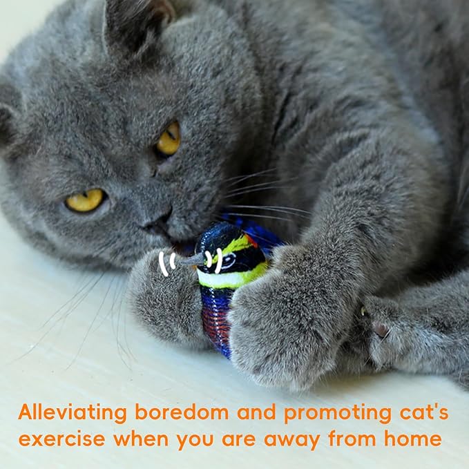 • * Chirp Sound, lifelike Chirp bird sound activated by slight touch of your cats, attract their interest to play with, to release their anxiety, boredom while you are away home.