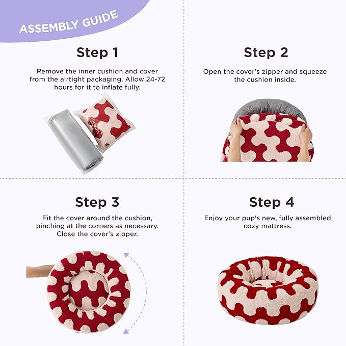 - Snuggle Haven: Love a good cuddle? So does your pet! With its soothing sherpa and raised rim, Lesure's Calming Donut Bed gives your furry friend the perfect nook to curl up in. Offering head and neck support filled with an ideal 2:1 ratio of chopped foam and polyfill to make it a prime spot for relaxation.