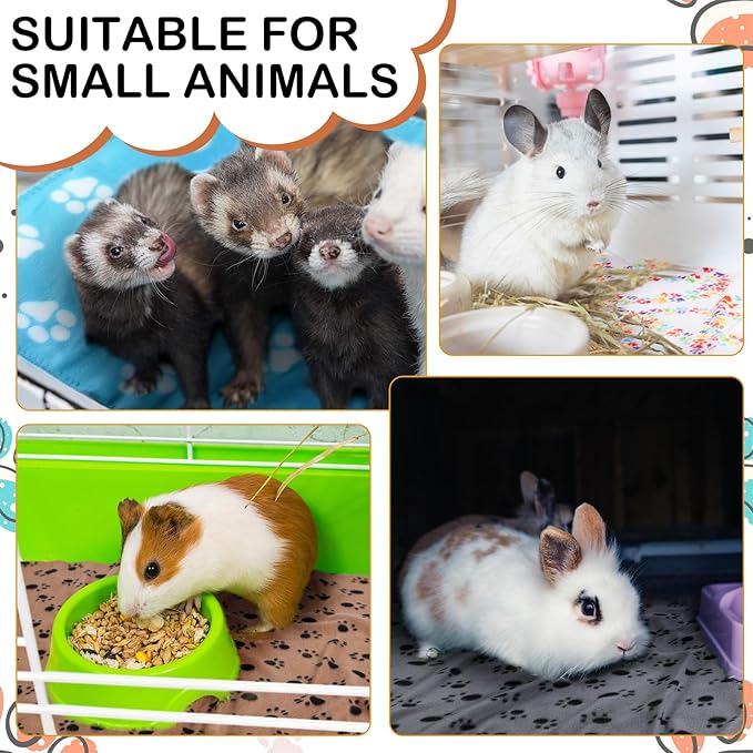 Tegeme 12 Pieces Fleece Blankets for Pets Dog Puppy Paw Print Cat Bedding Cover Blanket for Small Animals Pig Cage Liner Sleep Mat Pad Kitten Soft Warm(Cute Style,12 x 12 Inches)