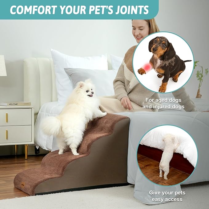 Dog Stairs for Small Dogs 19.7" H, Pet Step with Leakproof Cover, High Density Foam Cat Ramp for Bed, Couch or Sofa, Lightweight, Durable, Comfort, 15.7x28.3x19.7 inch, 4 Tiers, Brown
