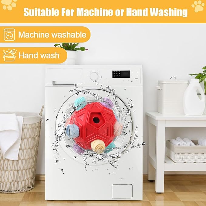 - [Easy to Clean & Use] The pet snuffle ball can be simply hand washed and machine washed. Wash and dry it and then you can reuse it! This toy adds much more fun to your interaction with the dog. Untie the cloth strip at the end of the toy and put it into the snack, then roll it up and stuff it into the hole. The dog finds the snack through its sense of smell and induces the dog's sniffing instinct.