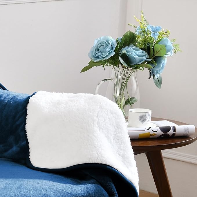 Waterproof Blanket for Bed Couch Sofa, Soft Liquid Pee Proof Pet Blanket for Dog Puppy Cat, Reversible Sherpa Fleece Blanket for Furniture Protector (Navy Blue, 30x40 inches)