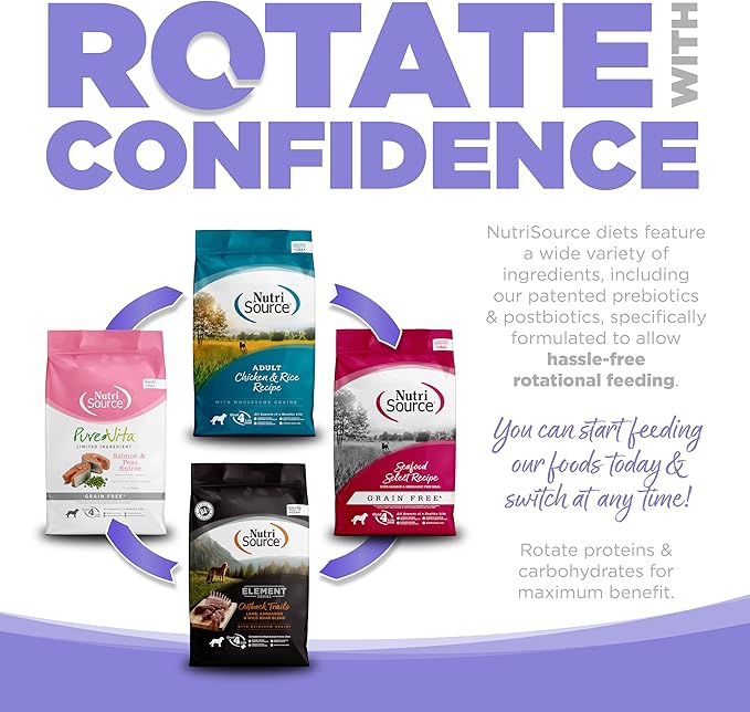 • NutriSource Element Series are high animal protein diets, legume and potato free, delivering maximum nutrient density, along with our proprietary pre- and pro-biotics blend to support digestion and healthy gut function