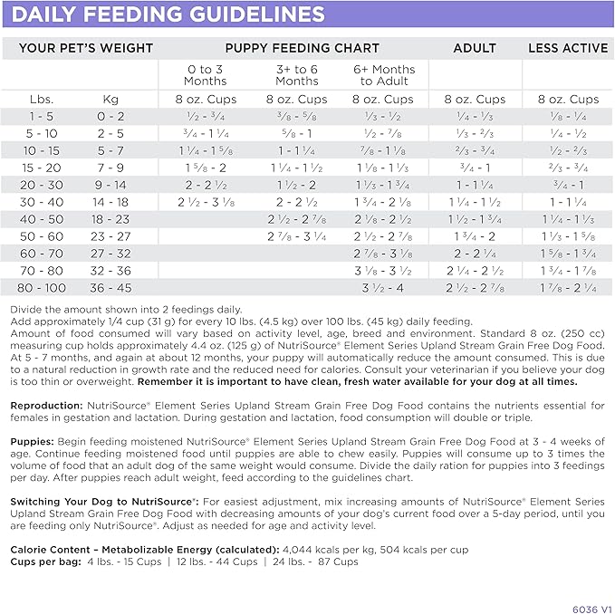 • NutriSource Element Series Upland Stream is formulated to meet AAFCO guidelines for all life stages