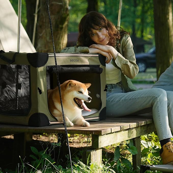 - Collapsible Dog Crate: EHEYCIGA portable dog crates have different sizes for small, medium, large and extra large dogs. It can provide a safe and comfortable dwelling for your pet which can be set up in seconds without tools. Also It can be folded down instantly to save space when traveling or when not in use.