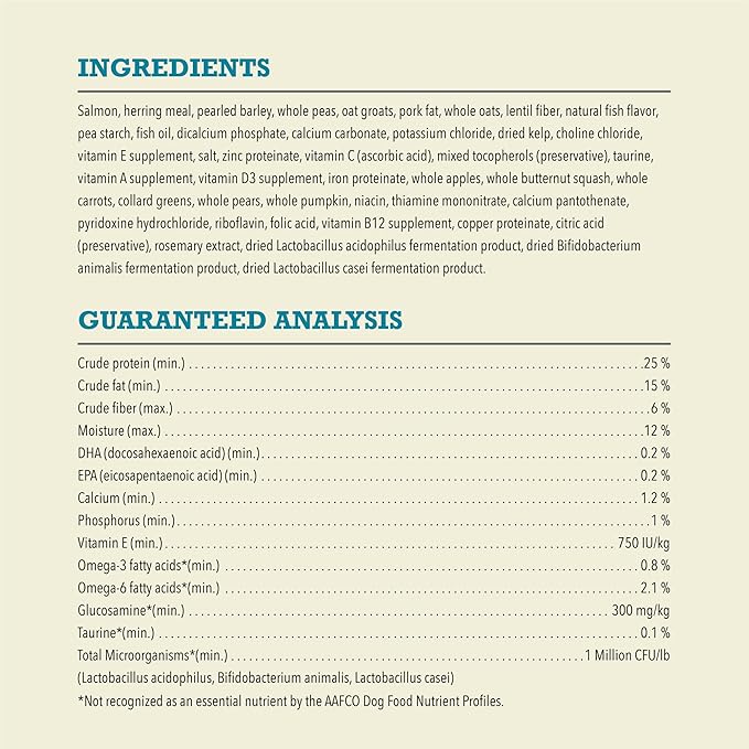 • Thoughtfully balanced recipes with protein-rich salmon, wholesome grains, vegetables and fruit. Packed with nutrients, not fillers, for less than $1.40/day*.