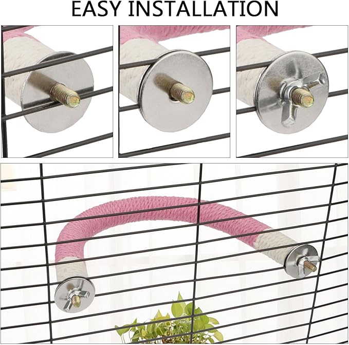 • Non-slip hemp rope perch: Provides good foot exercise, trims beak and nails naturally, and safe for chewing.