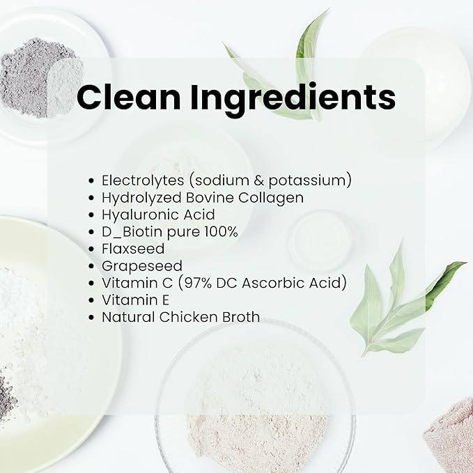 - Hydration + Recovery Formula – With electrolytes, collagen, hyaluronic acid, flaxseed, grapeseed and vitamins C & E for joint, skin and hydration support.