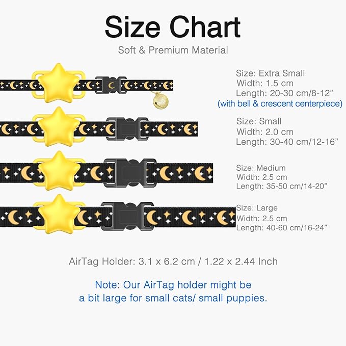 - _tylish & Eye-catching Design_eaturing an exclusive moon and star design collar and adorable sun-shaped AirTag holder, your dog will not only be safe but also make a fashion statement. Prepare for an influx of compliments on your dog's stylish appearance.