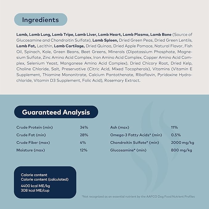 - SINGLE PROTEIN, NUTRIENT DENSE: Featuring free-range lamb, organs, bone, this grain-free dog food delivers nutrition with a mouth-watering taste for all dogs. The Steam & Dry approach safely preserves nutrients for a balanced healthy diet. The great taste and soft but crunchy texture is perfect for all life stages, from puppy food to senior dog food needs.