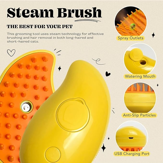 3 In 1 Silicone Pet Brush with Steaming Function - Self-Cleaning Cat Grooming Tool for Massage and Detangling (Yellow by Cat Steamy Brush)