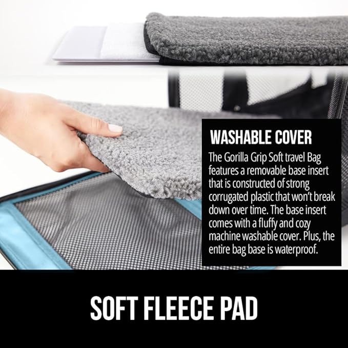 GORILLA GRIP Cat Carrier Travel Bag Up to 15 Lbs, Soft Collapsible Small Dog Carriers, Top and Side Entry Breathable Mesh, Grip Feet on Underside, Cozy Washable Waterproof Pad, Portable Kennel, Blue