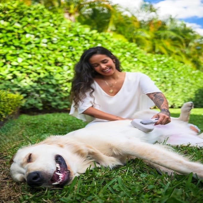 - EASY TO USE & CLEAN SLICKER BRUSH FOR DOGS – Make every grooming session stress-free with this ergonomic dog grooming tool. The self-cleaning mechanism and laser pointer technology enhance grooming efficiency, making it the ultimate slicker brush for dogs, dog brush for shedding, and deshedding dog brush.