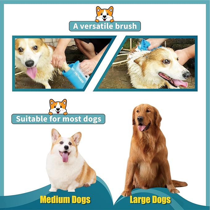 - 【High Quality Materials】The brush of the dog foot washer and 2pcs the adjustable dog shower brush are made of soft and skin friendly silicone material. Paired with 2 high-quality coral velvet super absorbent towels. can help you clean up your dog's muddy paws.