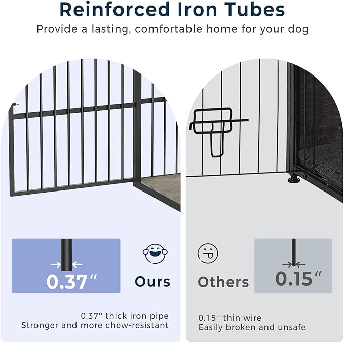 - _turdy and Chew-Resistant_his dog crate furniture for 2 dogs is made of premium particle board and iron pipe, which is stronger and more chewy; It will accompany your dog throughout the growing stages