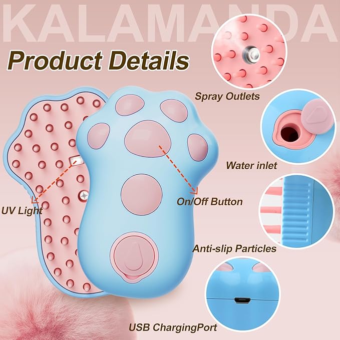 - 【4 in 1 Cat Steamy Brush】Combing, spray cleaning, massaging and shedding. Steamy cat brush could clean dirt from hair and skin. Reduce the frequency of bathing. And massage to promote blood circulation.