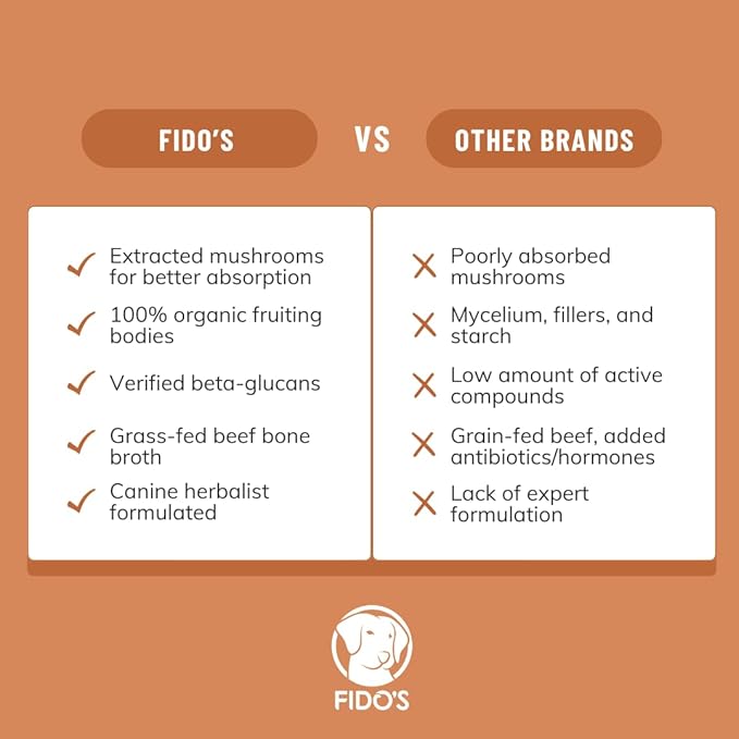 Fido's Longevity Bone Broth for Dogs - Turkey Tail + Maitake Mushroom - Grass-Fed Beef Bone Broth Powder - Dog Immune Support - Mushroom Supplement for Dogs - Dog Food Topper for Dry Food - 60 Scoops