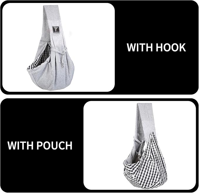 - 🔒 【Enhanced Safety Features】: With dual safety protection, the adjustable hook attaches securely to your pet's collar or harness to prevent accidents. A safety buckle at the sling's opening ensures your dog or cat stays safely inside, even if they're feeling playful.