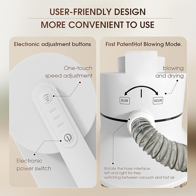 - 🐶【All-in-one Professional Grooming】:This grooming clipper comes with 6 proven tools: grooming and smoothing brushes to prevent damage to your pet's epidermis for softer, smoother and healthier skin and coat; motorized clippers for excellent clipping performance; nozzle and cleaning brush to collect pet hair from carpets, sofas, and floors, and a hot hair dryer to quickly blow-dry the fur!