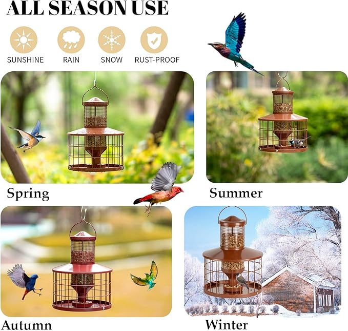 - BEST GIFT CHOICE: Premium quality squirrel-proof feeder attracts a large number of birds to your yard. This cage bird feeders also makes a great gift for bird lovers, and anyone who enjoys beautiful enjoyment, add fun to the life of people