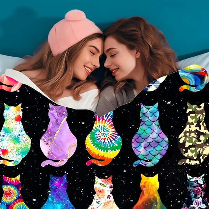 Cat Blanket Soft Cozy Flannel Throw Blanket Warm Lightweight Blankets Gifts for Cat Lovers Kids Girls Women Adults 50"x40"