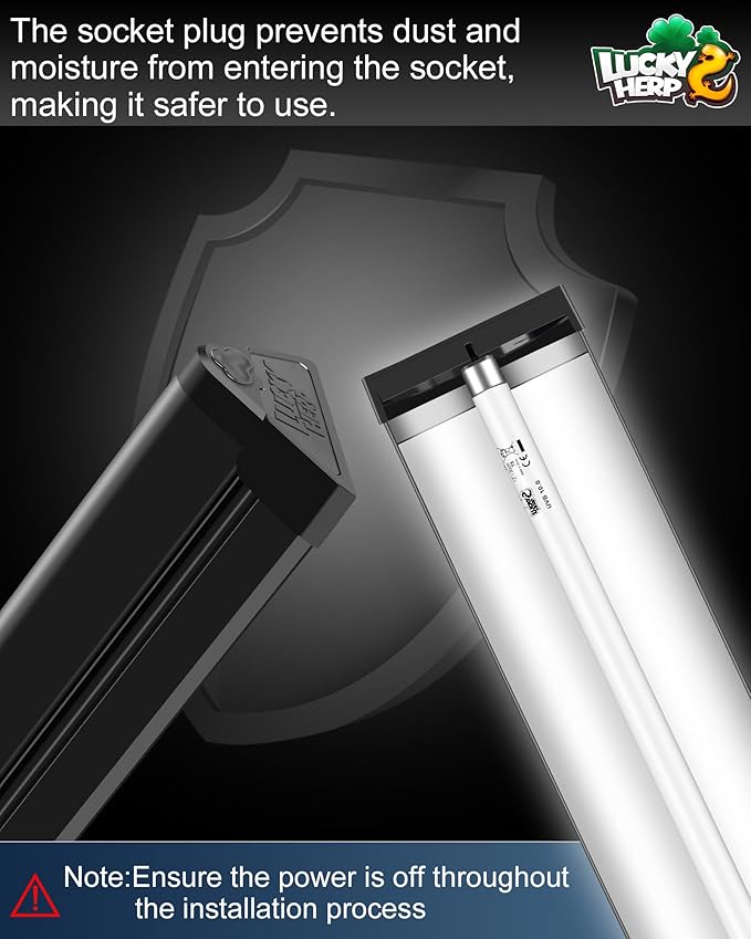 • Reptile Light Fixture Socket Plug - LUCKY HERP T5 reptile light fixture socket plug is designed for use with T5 reptile light fixture. We strongly recommend you to install socket plugs on the light fixtures. Socket plugs can prevent dust and moisture from entering the sockets, providing a safer environment for you and your pets to use.