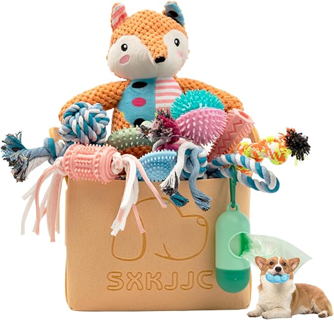 • A wide variety of puppy toys: Our dog toy basket includes the most popular puppy toys for teething and to keep them busy, ensuring you have everything you need to make your puppy happy