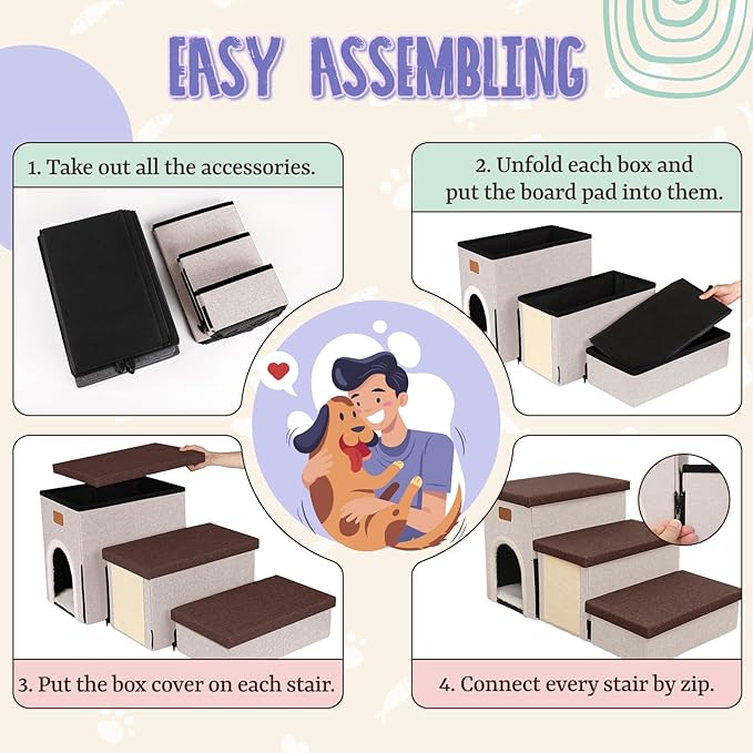 - EASY ASSEMBLY: The dog stairs for high beds are simple to assemble with detailed instructions provided. These pet stairs for small dogs can also be easily folded flat to store, making it a convenient addition to your home