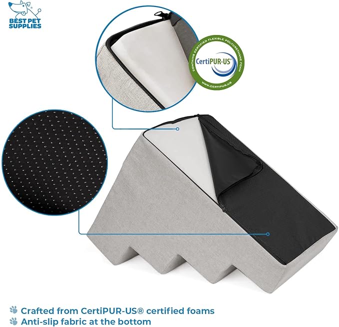 - Pet-Safe Material: Made with CertiPUR-US Certified Foam, these dog stairs for couches are free from harmful substances like ozone depleters, PDBW flame retardants, mercury, and lead; ensuring utmost safety for your pets