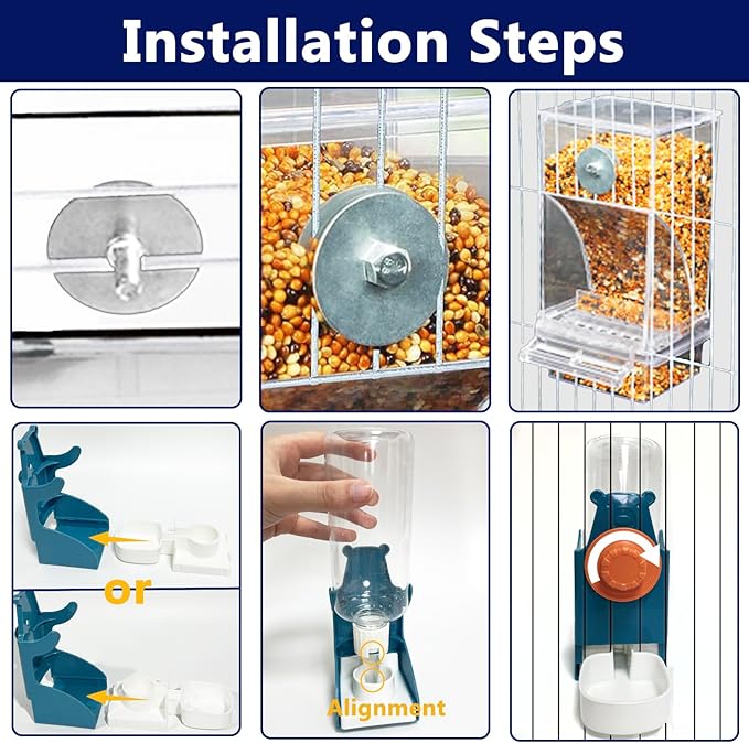 - Easy Installation & Versatile Placement: With no complicated setup required, these feeders can be effortlessly attached to your birdcage using the provided screws. Designed for flexibility, they can be mounted either inside or outside the cage. The feeders also feature an easily accessible top cover for quick food refills without the need for removal, making it an ideal and convenient choice for your beloved birds.
