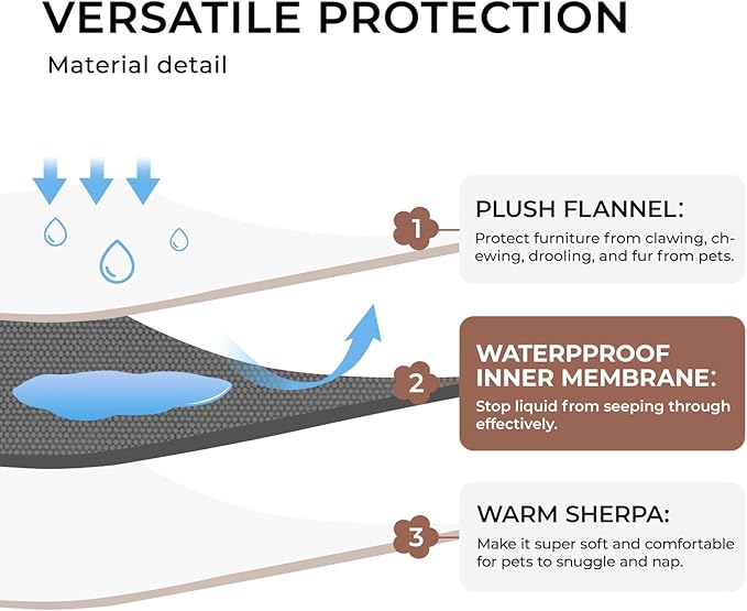 - Furniture Protection: The waterproof and reversible design not only keeps your pet snug but also shields your furniture, including couches, chairs, beds, car seats, and more, from chewing, spills, scratching, and shedding. Safeguard your belongings from those adorable but sometimes destructive little paws, making it an ideal gift for pet owners and their pets.