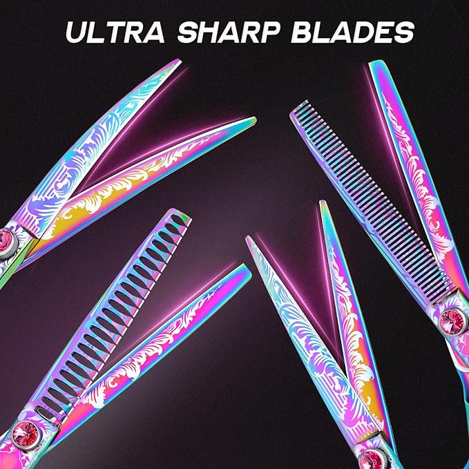 Dragon Creek Dog Grooming Scissors - Pet Cutting Thinning Chunker Shears Set for Grooming Trimming Texturizing Dog Cat Rainbow