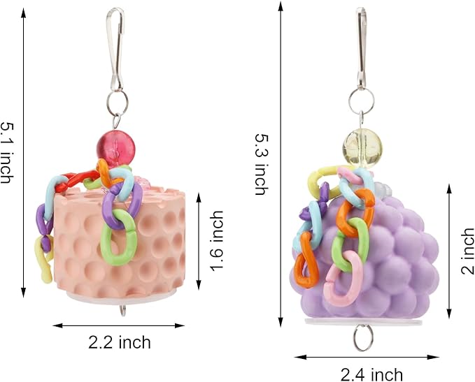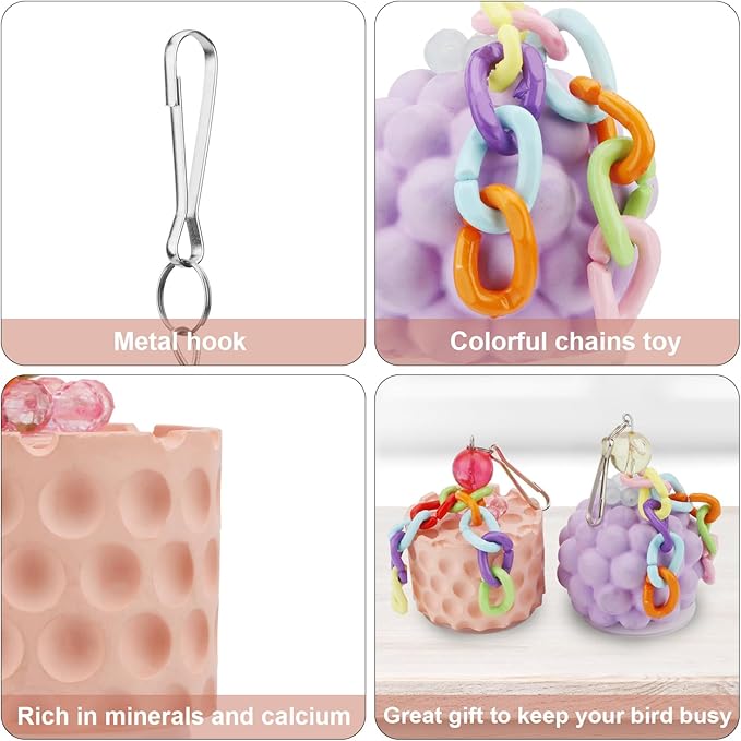 • Fun bird toys have bright colors that will attract the attention of feathered friends when you place the toy inside the bird cage. Uneven surface is designed for better trimming and cleaning of the bird's beak to keep the beak healthy