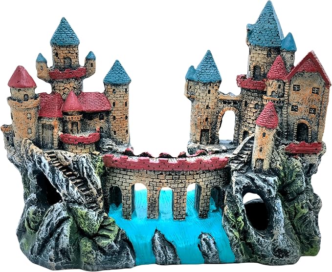 - 🐋The Vintage Castle aquarium Decoration make your aquarium looks vividly, add to natural color and a beautiful scenery. Also is an excellent hiding cave for fish to play, add more fun to their lives and helps to relieve stress