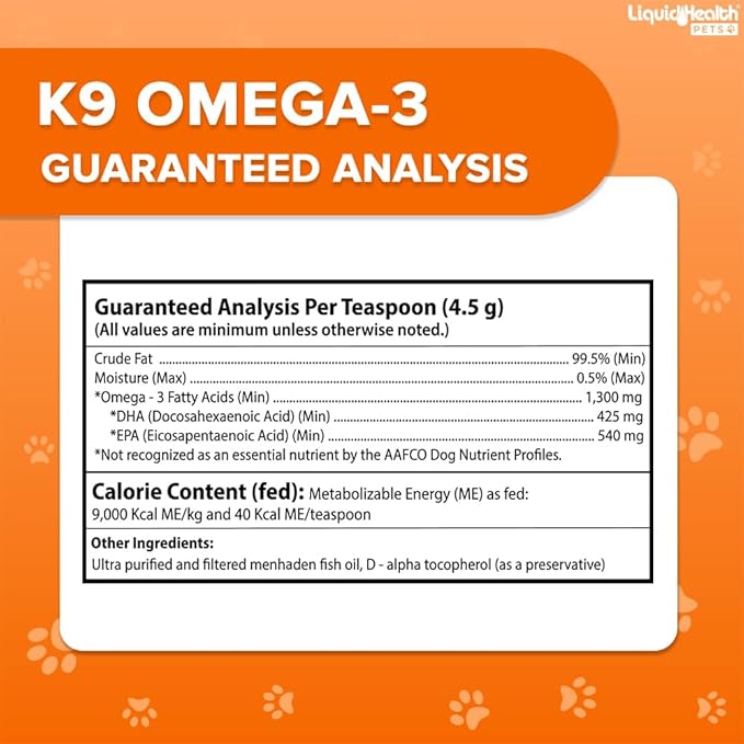 - FOR ALL BREEDS AND AGES: Indulge your furry friend with the tantalizing taste of K9 Omega 3 Fish Oil Liquid for dogs. Specially formulated to suit all doggos, no matter their size, age, or breed, this deliciously healthy supplement has been formulated to help your pup's overall wellbeing.