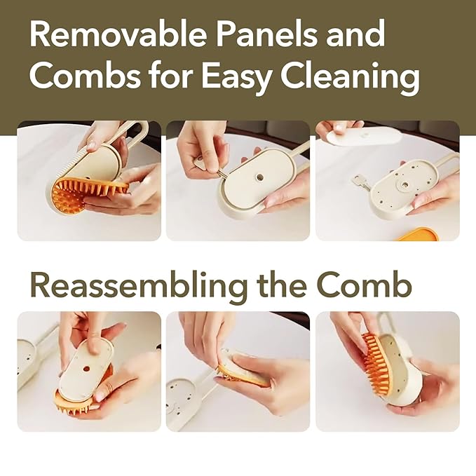 - 【HASSLE-FREE CLEANING】Designed with removable panels and combs, this pet grooming brush ensures easy cleaning and maintenance, allowing you to keep the brush hygienic and ready for the next use with minimal effort