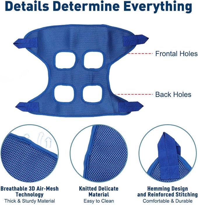 - Easy to use & clean: Simply place pet legs in holes, connect D-ring belt to harness with carabiner, and machine wash