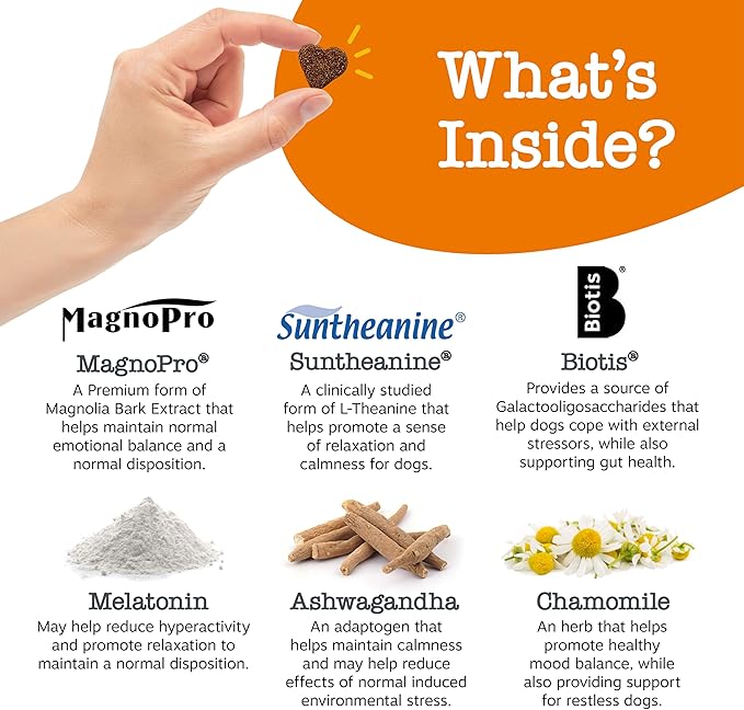 - Real Premium Ingredients - This calming supplement includes MagnoPro (Magnolia Bark Extract) and Biotis (Galactooligosaccharides), which work together to help maintain normal emotional balance and provide calmness for dogs