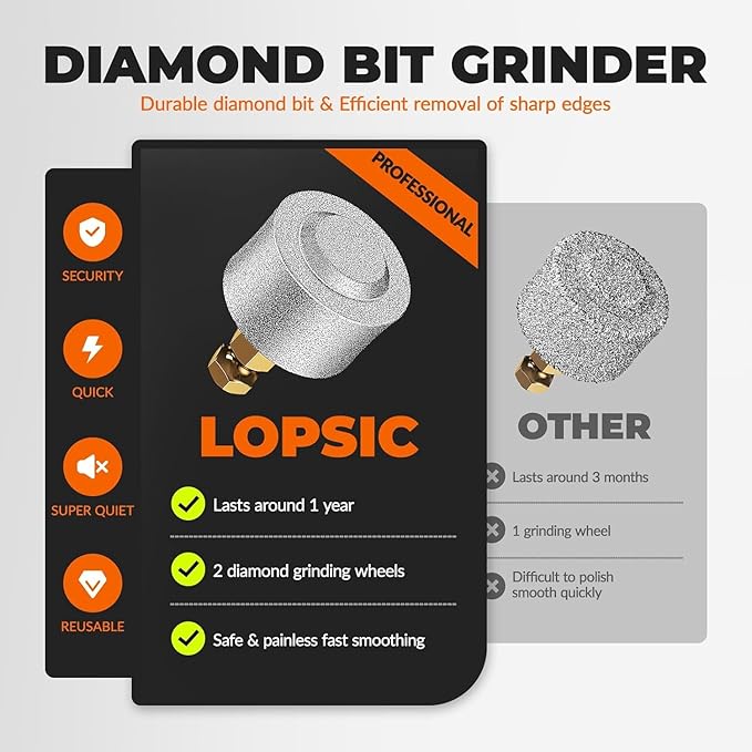 • Elevate pet nail care with our LOPSIC dog nail grinder kit, including essential accessories for optimal nail care. Features 2 regular replacement diamond bits, 1 extra hard diamond bit, 1 removable dust cap, and a velvet storage bag.