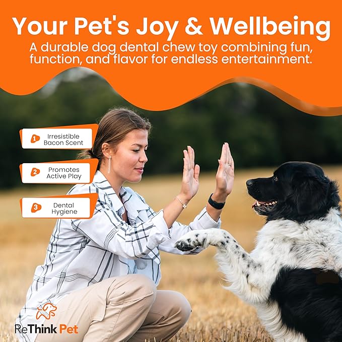 - Savor Stimulating: These dental munch-ring dog chew bones are infused with a bacon scent to keep your pet's mind engaged for hours. Our durable nylon dog toys stimulate your dog’s olfactory senses, keeping them entertained and preventing boredom.