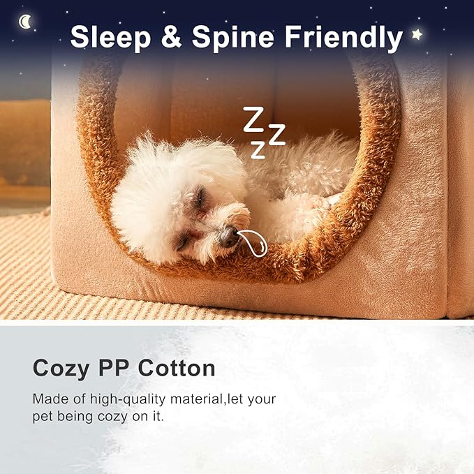 Jiupety Dog House Dog Bed with Cover Cave with Non-Slip Bottom, M Size Tent Bed Up to 15 Lbs Cat and Puppy, Brown