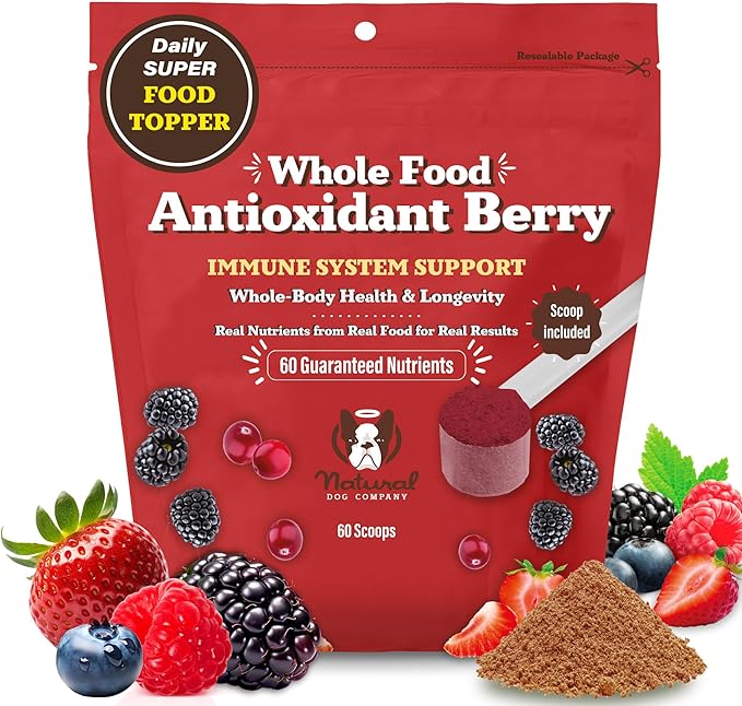 - POWERFUL ANTIOXIDANT FOR A HEALTHIER DOG: Is your dog not getting the full benefits from their daily meals? Transform their meals with our Antioxidant Berry Granules, a nutrient-dense dog food topper that fights free radicals, supporting your dog's overall well-being. Go beyond generic with a topper that provides superior nutrition, helping your dog live a vibrant, active life.