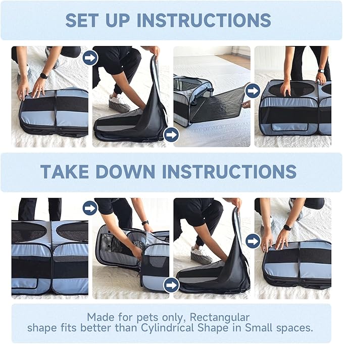- 【Zip-Off Top and Roll-up Doors for Easy Access】: Convenient zip-off top of pet playpen allows quick access to your pets and ensures enhanced ventilation when needed. Perfect for indoor or outdoor use.